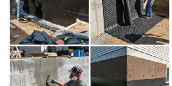 Exterior wall waterproofing involves excavating around your foundation to expose the outside basement walls and applying protective systems such as: